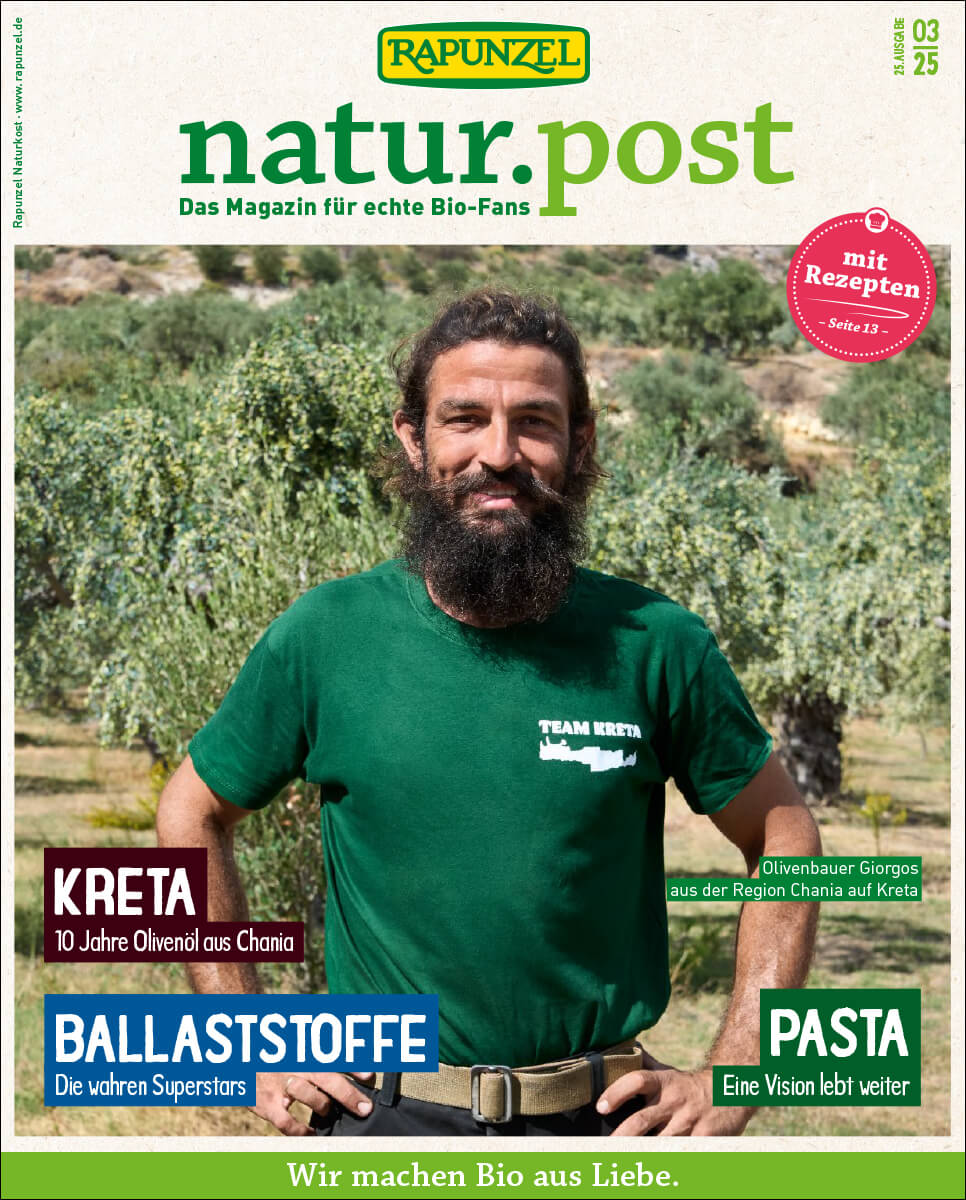 Für alle Bio-Fans gibt es die natur.post, ein eigenes, kostenloses Magazin von Rapunzel. Blätter gerne hier digital oder hol dir dein gedrucktes Exemplar im Bio-Fachgeschäft. Dort findest du die natur.post entweder dem Bio-Magazin Schrot&Korn beigeheftet oder einzeln ausgelegt.