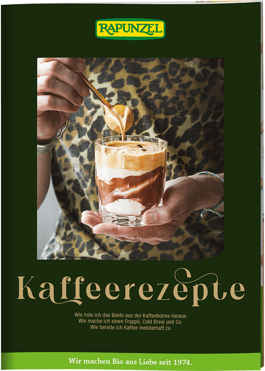 In der Rapunzel Kaffeewelten Rezeptbroschüre findest du abwechslungsreiche Kaffee-Rezepte und kreative Ideen für Snacks und Speisen, die perfekt zu deinem Kaffee passen.